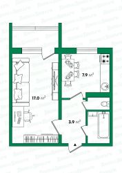 - Кухня правильной квадратной формы 7,9 кв. м