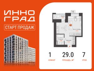 В уютном районе Кирова продается студия площадью 29.00 кв. м с отделкой. Квартира расположена в новом жилом комплексе комфорт-класса "Инноград" от девелопера "Железно".