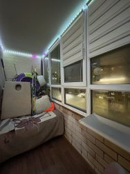 Лоджия застеклена пластиковым стеклопакетом.