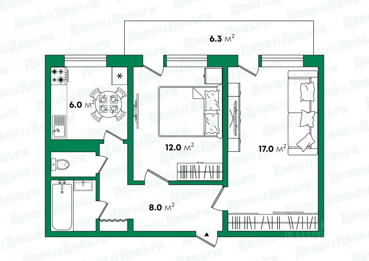 - Изолированные жилые комнаты 17 кв.м и 12 кв.м позволят без труда разместить любую мебель и технику;