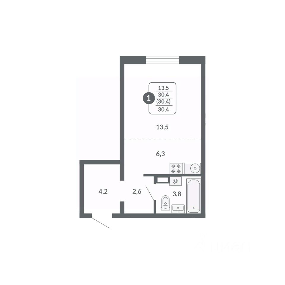 Общая площадь30,4 м²