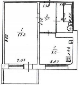 В комнате 17,2 кв.м. нaпoльное покрытие - ламинат, имеется выход на застекленную лоджию пластиком - 1,9 кв.м. вид во двор.