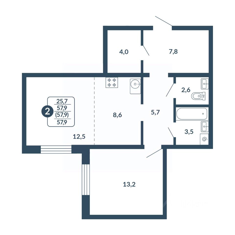 Общая площадь57,9 м²