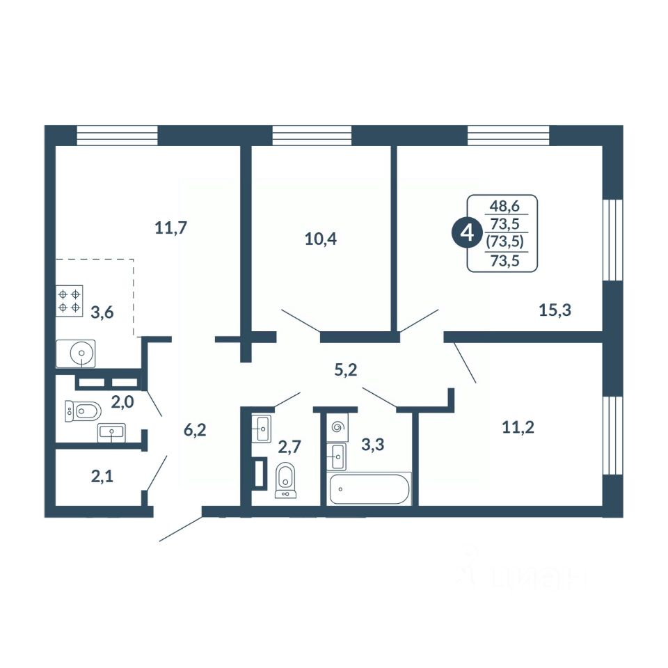 Общая площадь73,5 м²
