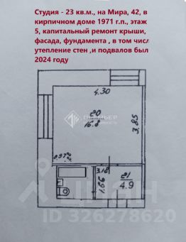 В продаже уютная квартира-студия в кирпичном доме, 1971 года постройки которая станет идеальным уголком для жизни или творческого гнездышка. Теплые кирпичные стены дома обеспечивают прочность и долговечность