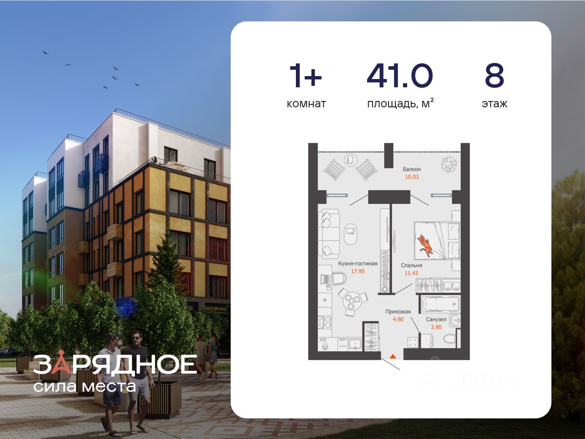 Продается 1-комнатная квартира, корпус 4/1, площадь 41.00 кв. Квартира находится в жилом комплексе комфорт-класса "Зарядное" (ГК "Железно").