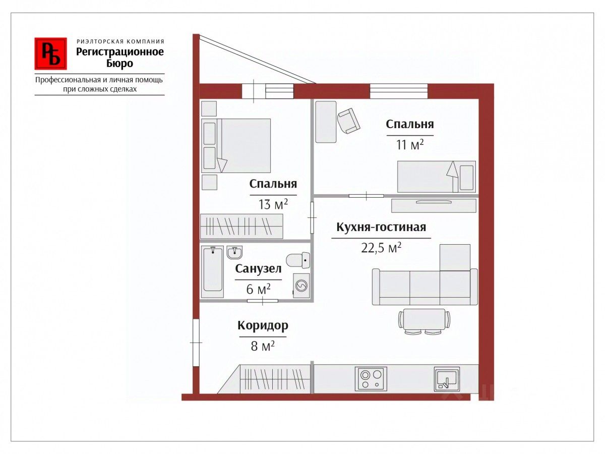 o Спальня 12 м² и вторая спальня 14 м² — каждая комната имеет достаточное пространство для комфортного сна и отдыха.
