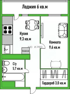 Общая площадь квартиры 31 м² + большая лоджия 6 м²