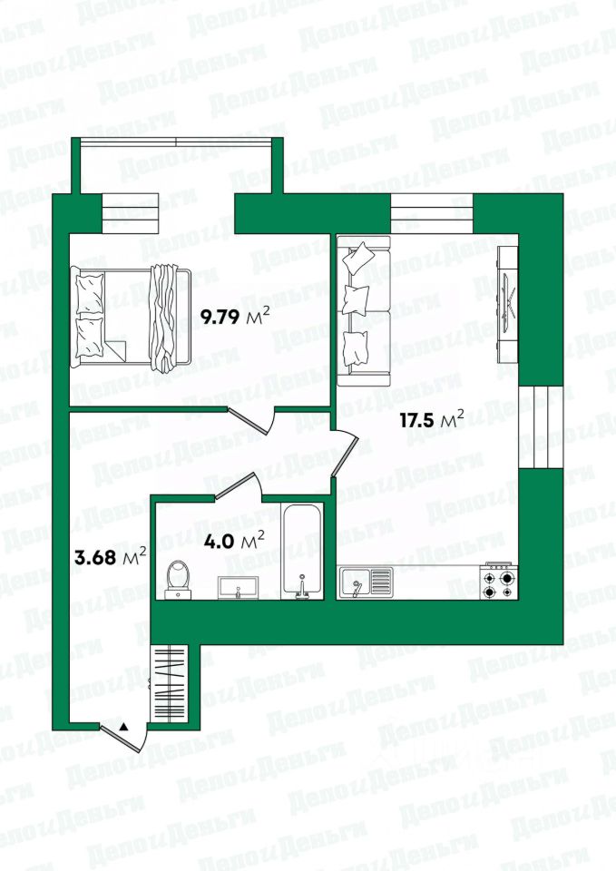 Площадь квартиры - 36,9. кв.м+ лоджия 3,91 кв.,