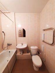 - Не требует вложений. В квартире сделан современный ремонт с использованием качественных отделочных материалов. Напольное покрытие в комнате - влагостойкий ламинат высокого качества. Установлены пластиковые стеклопакеты. Санузел выложен кафелем. Установлены приборы учёта. Новые трубы и сантехника.