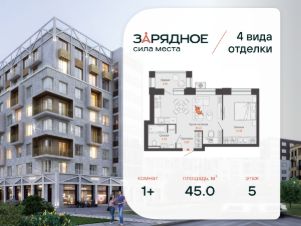 Продается 1-комнатная квартира, корпус 4/1, площадь 45.00 кв. Квартира находится в жилом комплексе комфорт-класса "Зарядное" (ГК "Железно").