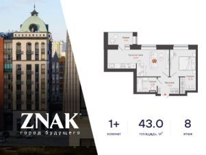 Продается 1-комнатная квартира в 3 км от Зубаревского леса, площадью 43.00 кв. м. Квартира находится в жилом комплексе комфорт-класса ZNAK от девелопера "Железно".