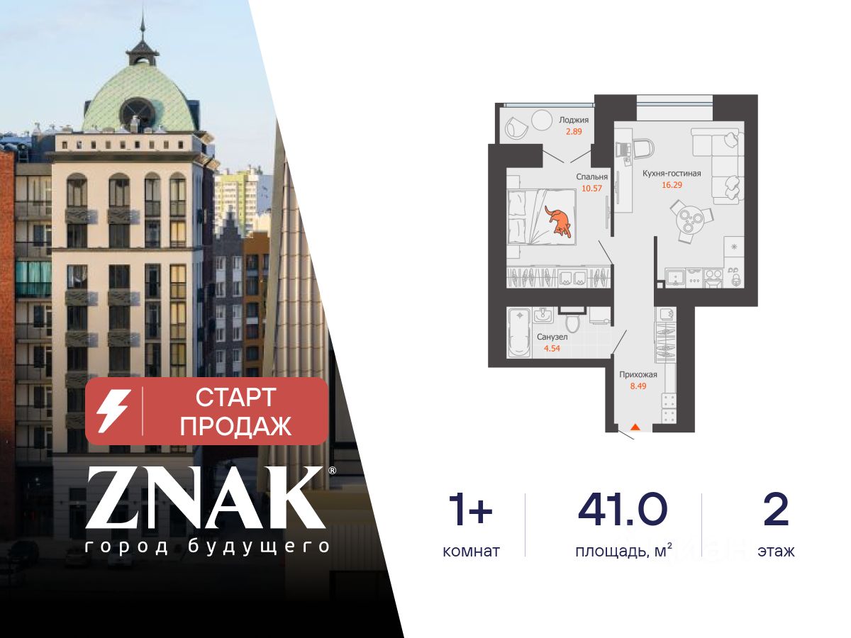 Продается 1-комнатная квартира в 3 км от Зубаревского леса, площадью 41.00 кв. м. Квартира находится в жилом комплексе комфорт-класса ZNAK от девелопера "Железно".