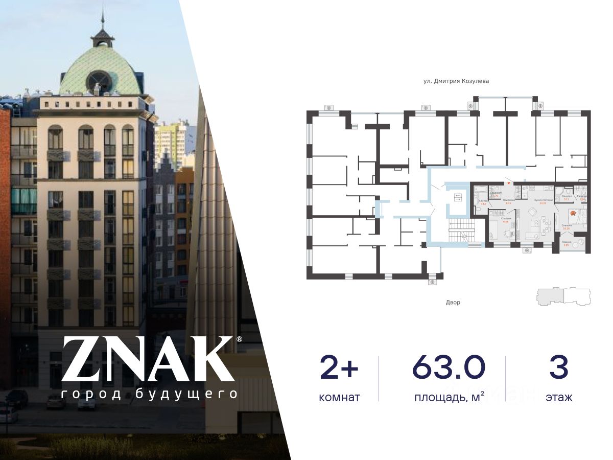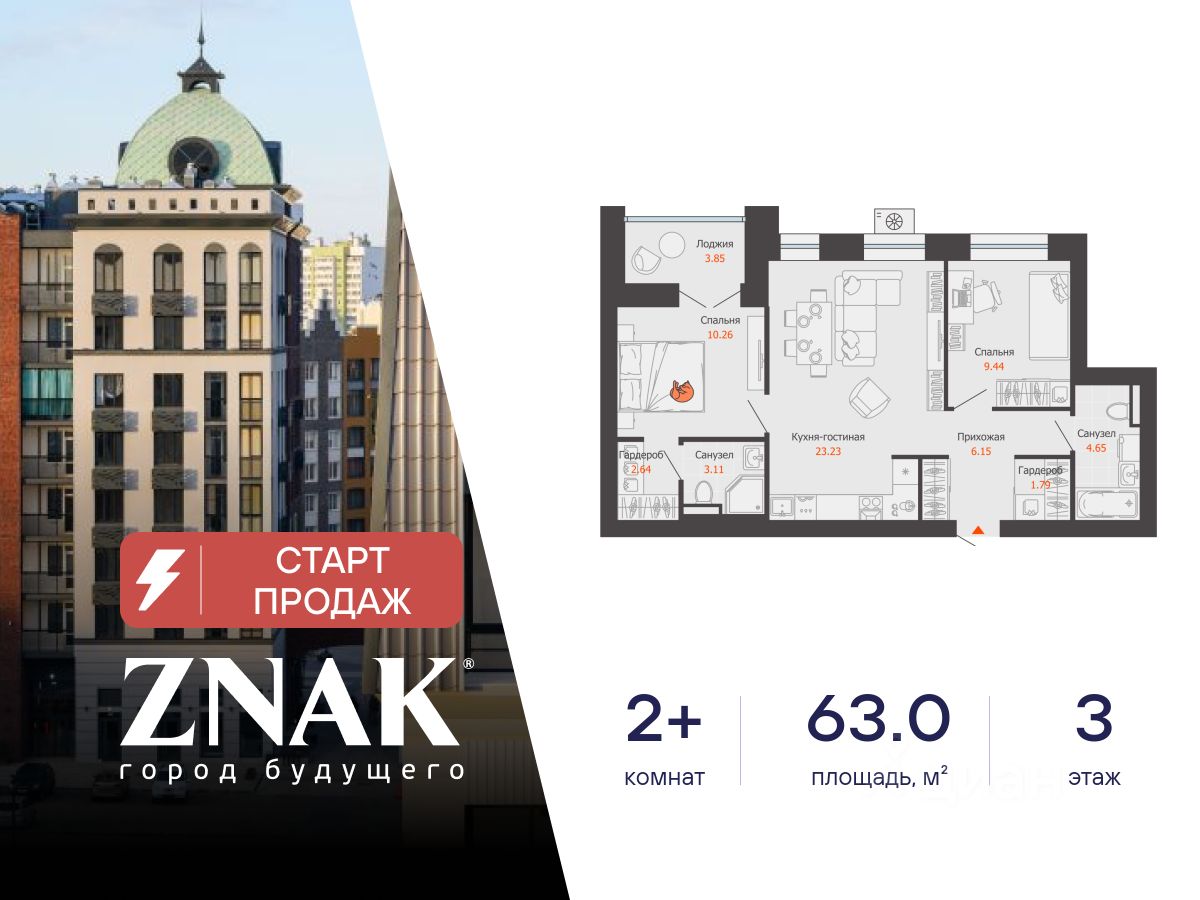Продается 2-комнатная квартира в 3 км от Зубаревского леса, площадью 63.00 кв. м. Квартира находится в жилом комплексе комфорт-класса ZNAK от девелопера "Железно".