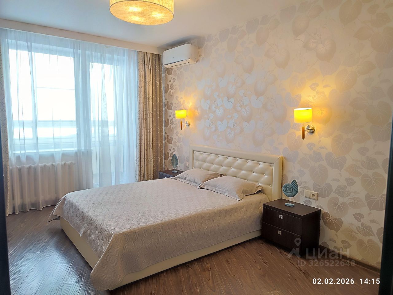 Просторная спальня оформлена в светлых тонах, оснащена кондиционером, имеет выход на лоджию.