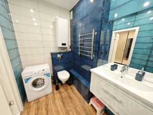 В наличии: варочная поверхность, духовой шкаф, холодильник, посудомоечная машина, микроволновая печь, стиральная машина, водонагреватель, вытяжка, электрический чайник.