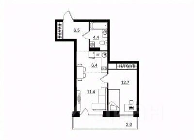 Общая площадь43,4 м²
