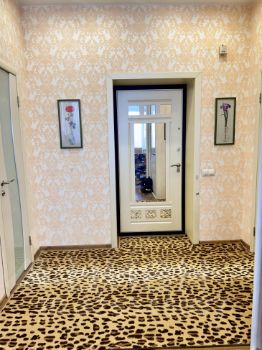 На полу в квартире уложен дорогой ламинат, зона кухни и прихожей выложена плиткой (на фото эти зоны прикрыты ковролином). Установлена надежная входная даерь.
