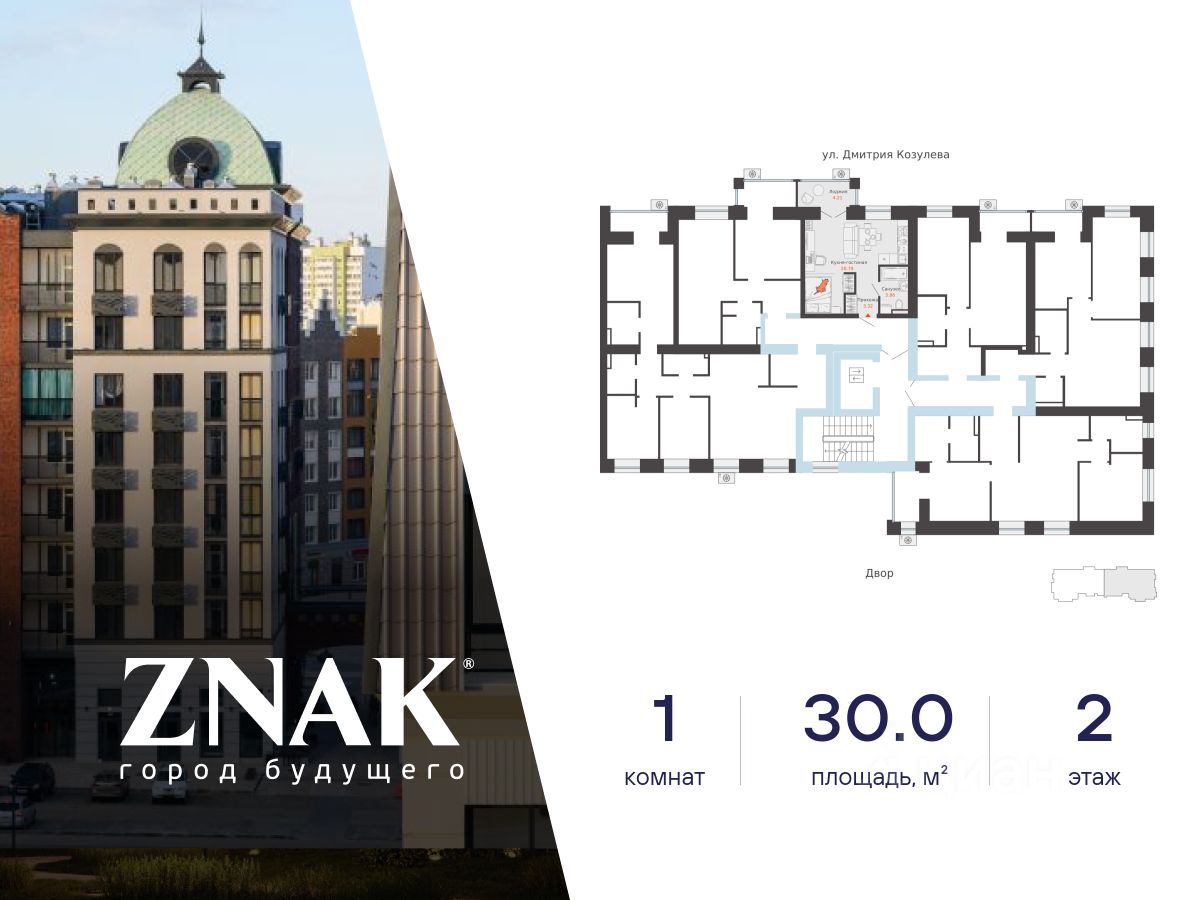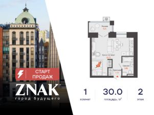 Продается студия в 3 км от Зубаревского леса, площадью 30.00 кв. м. Квартира находится в жилом комплексе комфорт-класса ZNAK от девелопера "Железно".
