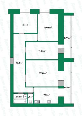 Общая площадь квартиры составляет 74 квм (без учета 2 лоджий)