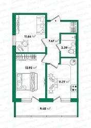 - две просторные комнаты правильной формы (13,92 кв.м. и 11,64 кв.м.)
