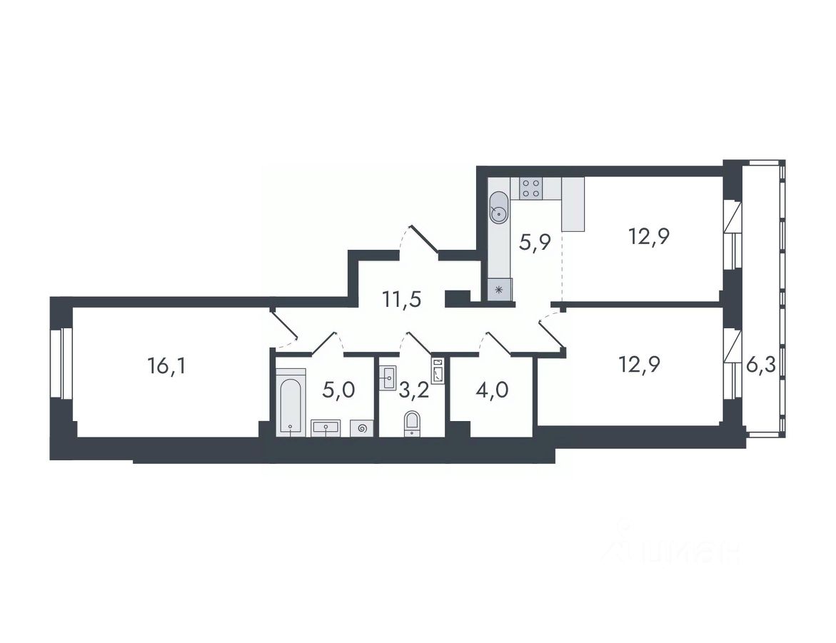 3-комнатная, 77.8 м², 29 по адресу Чистопрудненская, д. 13 Тип дома: Каркас/кирпич. Микрорайон "Чистые пруды"Преимущества покупки квартиры в новостройке напрямую от застройщика КСМ: