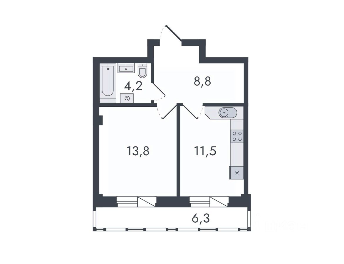 1-комнатная, 44.6 м², 263 по адресу Чистопрудненская, д. 13 Тип дома: Каркас/кирпич. Микрорайон "Чистые пруды"Преимущества покупки квартиры в новостройке напрямую от застройщика КСМ: