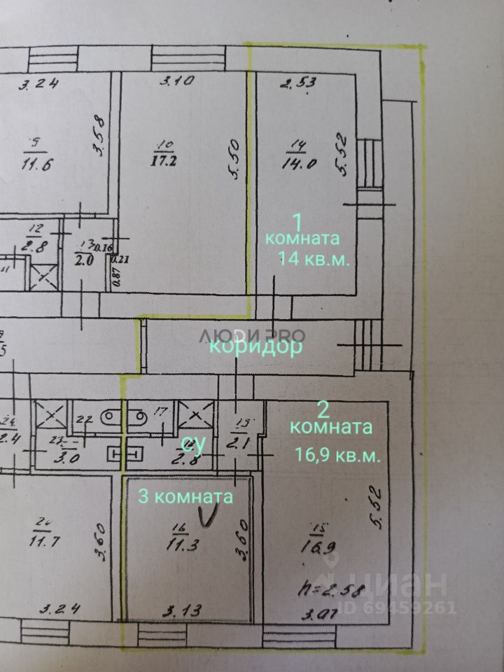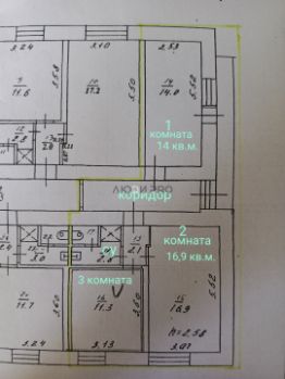 Площадь комнаты -16,9 кв.м.