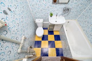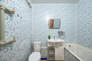 - санузел в кафеле, стены-пластиковые панели, вся необходимая сантехника