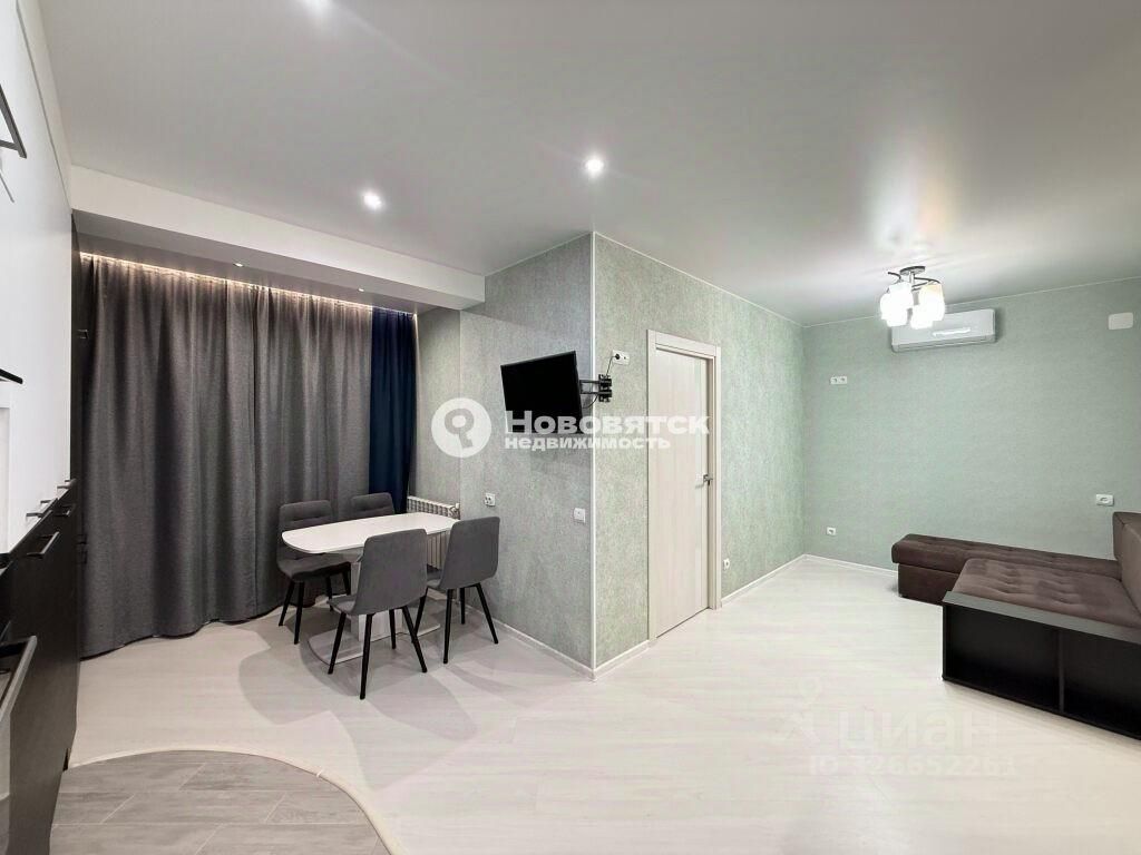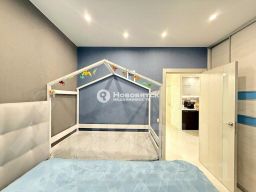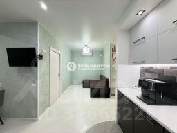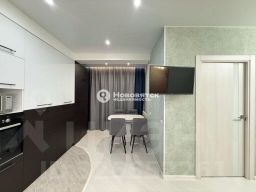 ** Функциональная планировка. Общая площадь: 41.7 кв.м., кухня-гостиная: 24 кв.м. и спальня: 9 кв.м. Выполнен современный ремонт: окна - пластиковые стеклопакеты (увеличенного размера), натяжной потолок с люстрой и точечными светильниками, пол - бетонная стяжка выполнена в единый уровень (без порогов), покрытие - керамогранит и ламинат. Санузел совмещён (кафель). Прихожая оборудована двумя большими шкафами-купе, качественная входная дверь.