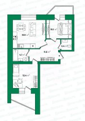 Две отдельные комнаты — 12,4 м² и 10,1 м²