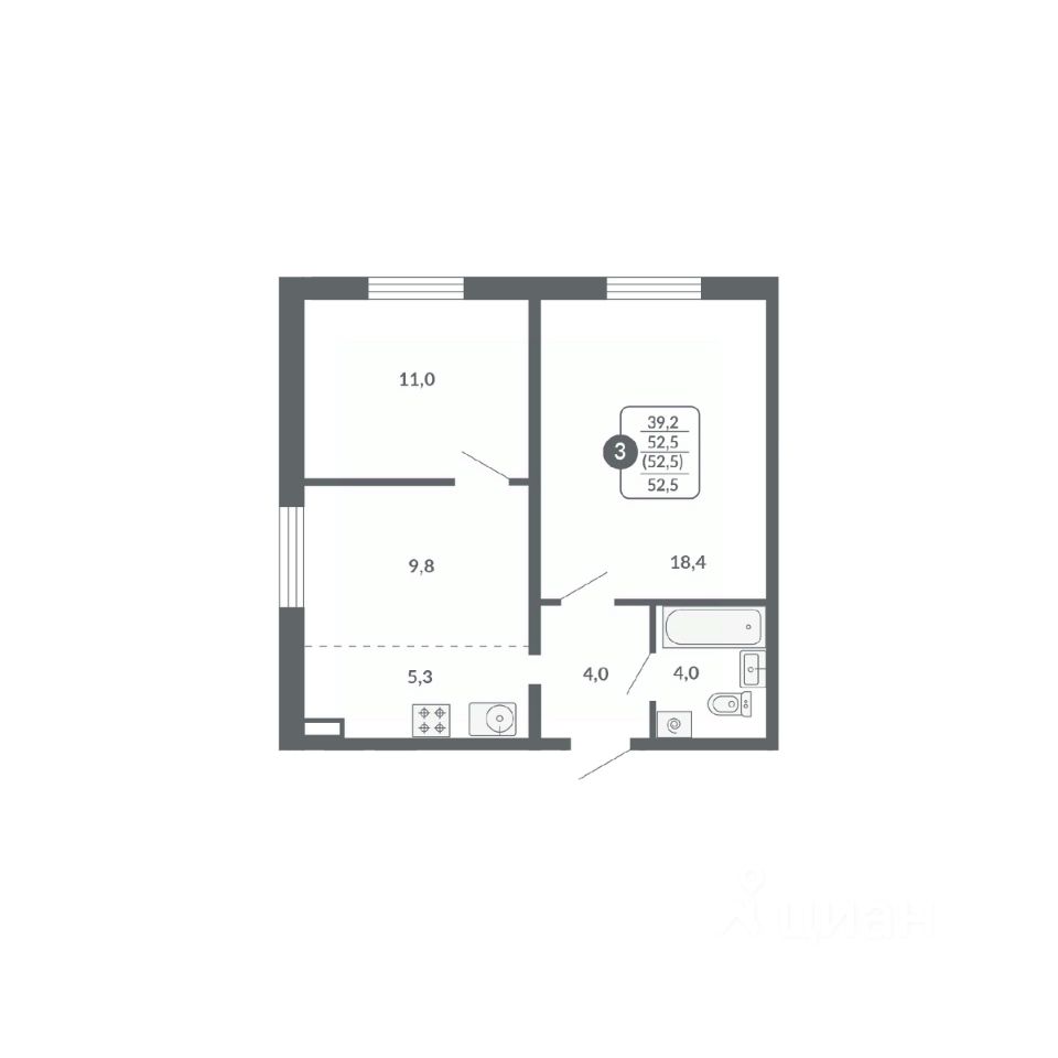 Общая площадь52,5 м²