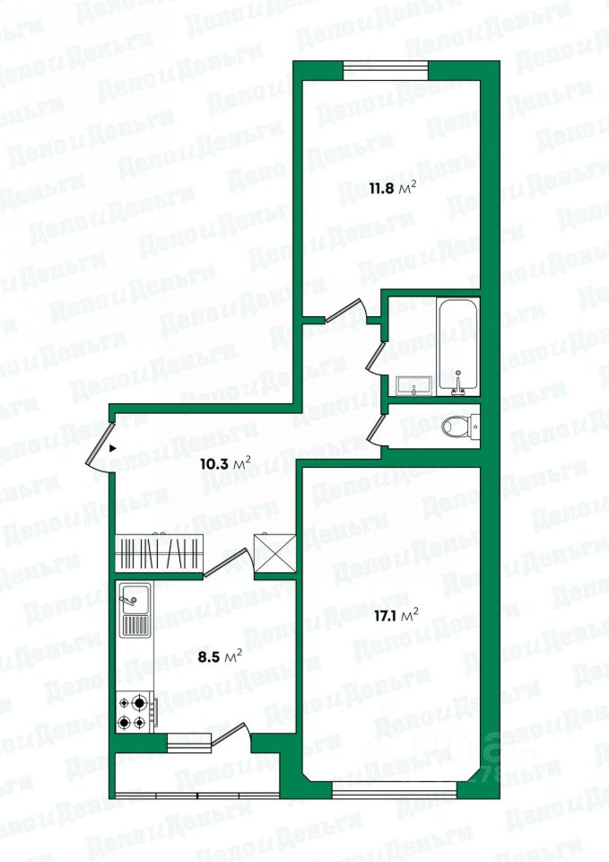 Две отдельные комнаты (17,1 кв.м, 11,8 кв.м)