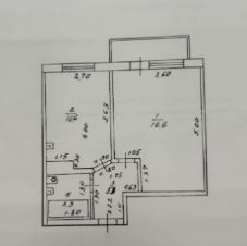 * Квартира не угловая, общей площадью 34,7 кв.м.; комната площадью 16,6 кв.м с выходом на застекленный балкон; просторная кухня 10,6 кв.м., где легко можно разместить всю бытовую технику; санузел совмещен в кафеле.
