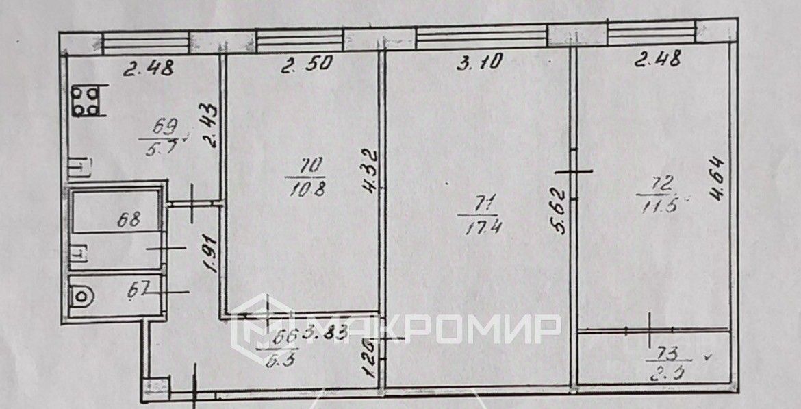 57,1 м²