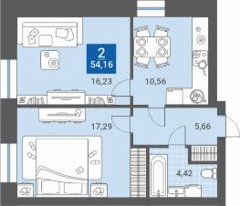 Продаётся 2-комнатная квартира в строящемся доме (дом 5), срок сдачи: IV-кв. 2026, общей площадью 54.16 кв.м., на 2 этаже. Новый жилой комплекс от застройщика "Гипромстрой" расположен по адресу: Россия, Киров, слобода Лосево, 5