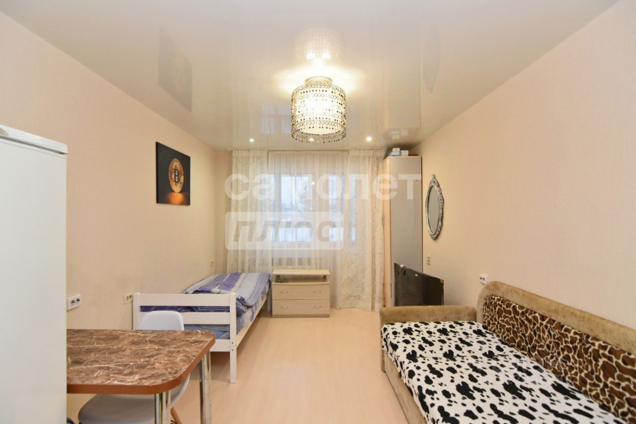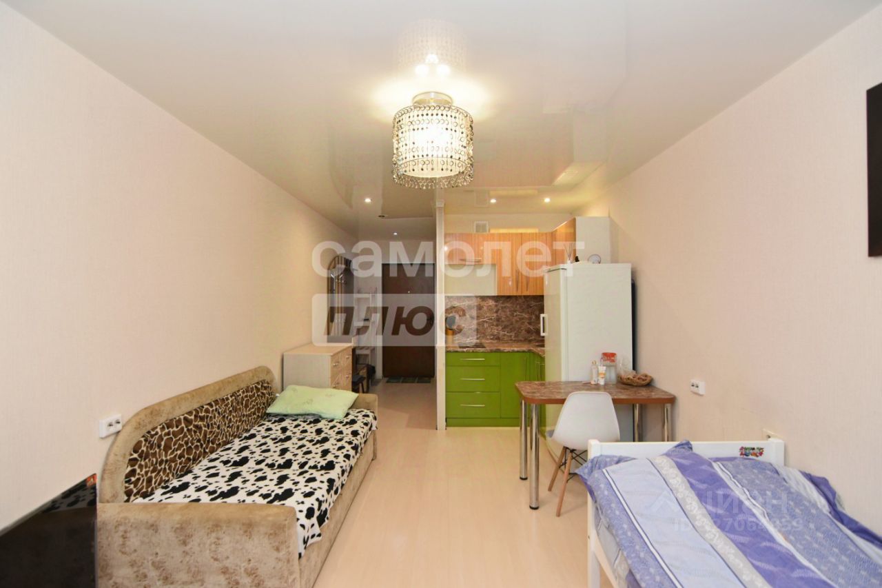 Состояние квартиры хорошее. В квартире выполнен Евро-ремонт: ламинат, керамическая плитка, обои, натяжные потолки. Установлены: пластиковые окна со стеклопакетом, люстры, точечные светильники, гардины, шторы, межкомнатная дверь, железная входная дверь, счетчики на воду, сантехника и сан.фаянс. Квартира студия: кухня-гостиная с выходом на лоджию, совмещенный сан.узел, прихожая. Лоджия застелена, установлены москитные сетки. Квартира теплая, светлая, не угловая;