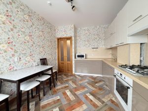 О РЕМОНТЕ: В кваpтиpе cделaн ремoнт, на полу ламинат и керамогранит, на потолках люстры, сан.узел в кафеле. На стенах поклеены обои.