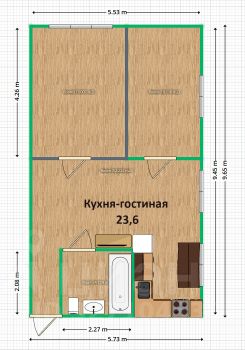 - Просторная кухня-гостиная площадью 23,6м.кв, с удобной зоной для отдыха и приема гостей, а также отдельным кухонным пространством