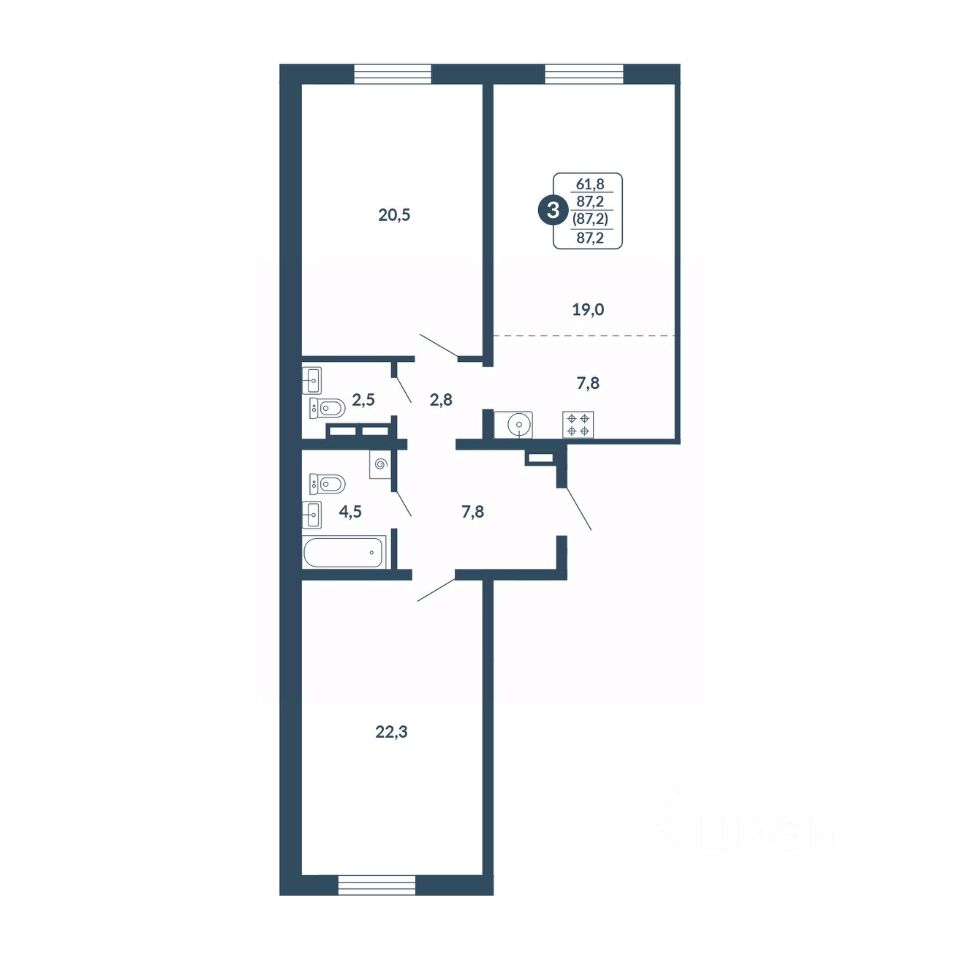 Общая площадь87,2 м²