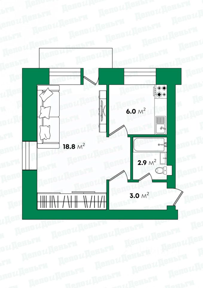 Общая площадь 30,7 квадратных метров идеально подойдет для комфортного проживания студента, молодой семьи или для инвесторов, желающих приобрести недвижимость с хорошей арендной окупаемостью