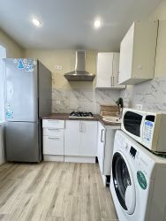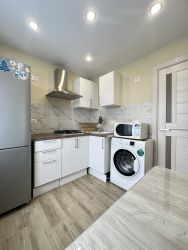 В квартире выполнен качественный дизайнерский ремонт в светлых тонах. Поменяна сантехника, электрика, установлены новые счетчики.
