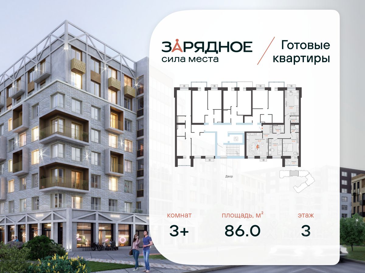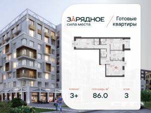 Продается 3-комнатная квартира, корпус 5, площадь 86.00 кв. Квартира находится в жилом комплексе комфорт-класса "Зарядное" (ГК "Железно").