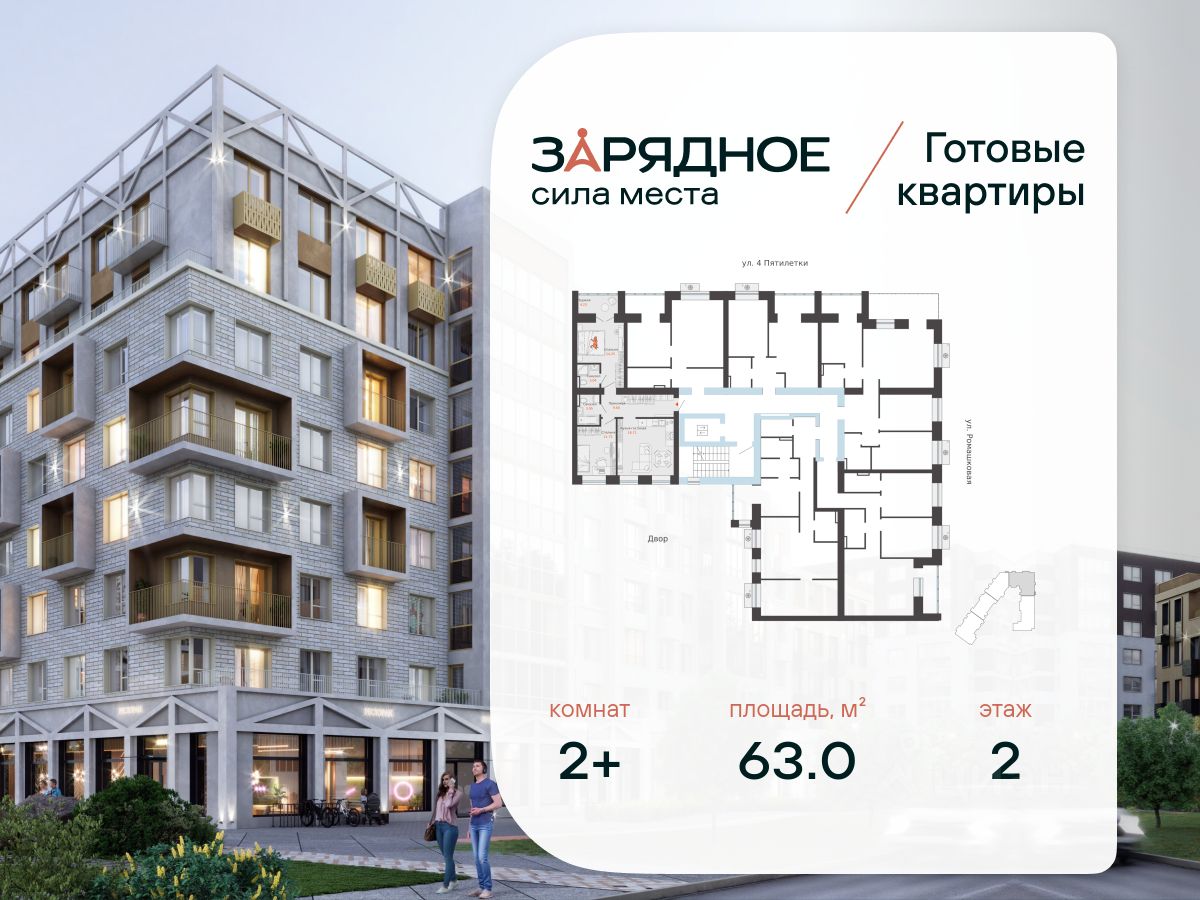Продается 2-комнатная квартира, корпус 5, площадь 63.00 кв. Квартира находится в жилом комплексе комфорт-класса "Зарядное" (ГК "Железно").