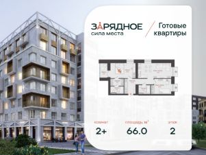 Продается 2-комнатная квартира, корпус 5, площадь 66.00 кв. с предчистовой отделкой. Квартира находится в жилом комплексе комфорт-класса "Зарядное" (ГК "Железно").