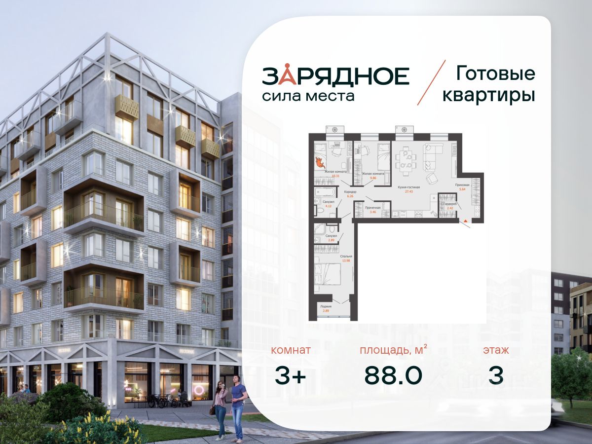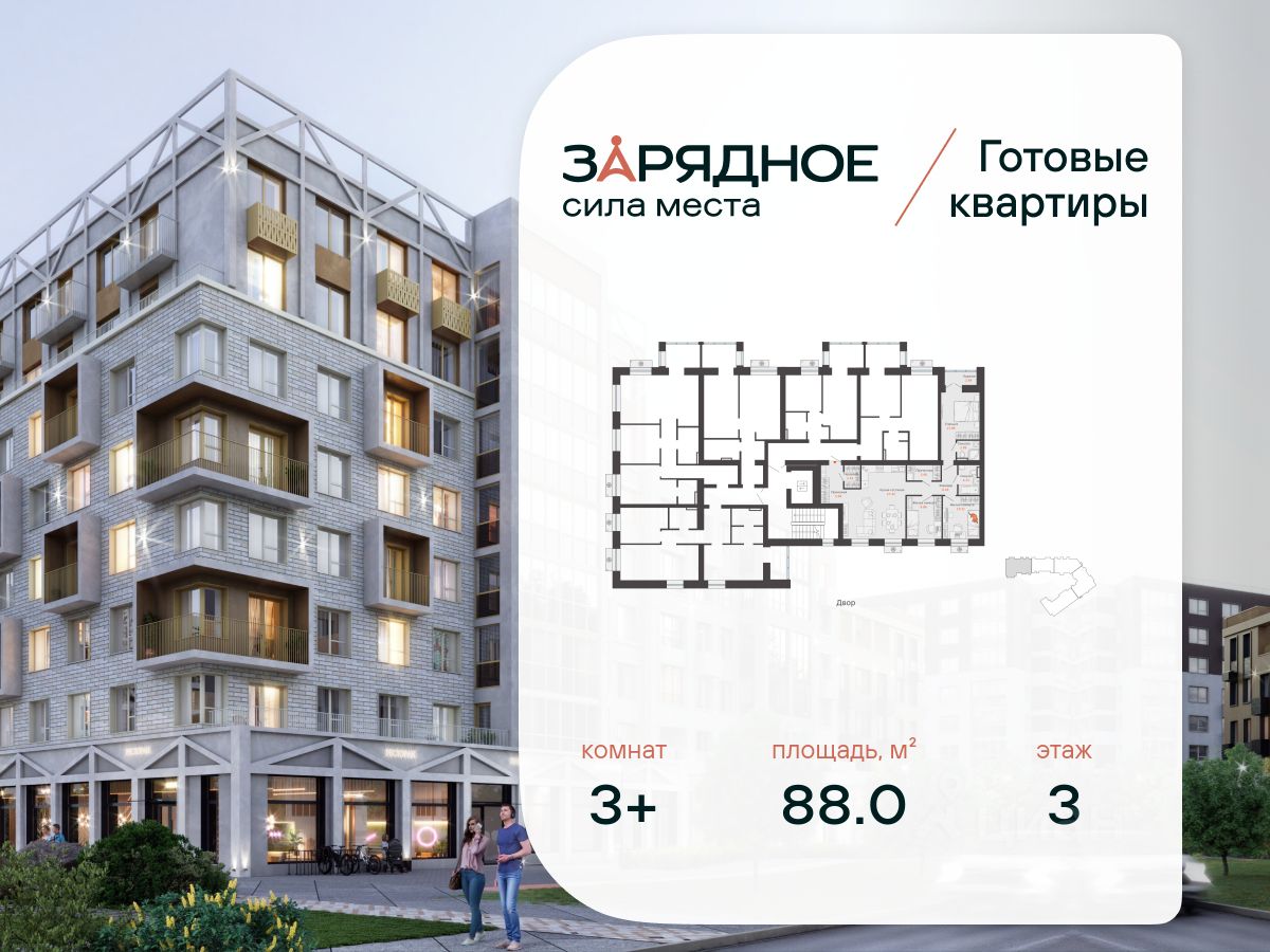 Продается 3-комнатная квартира, корпус 5, площадь 88.00 кв. с предчистовой отделкой. Квартира находится в жилом комплексе комфорт-класса "Зарядное" (ГК "Железно").