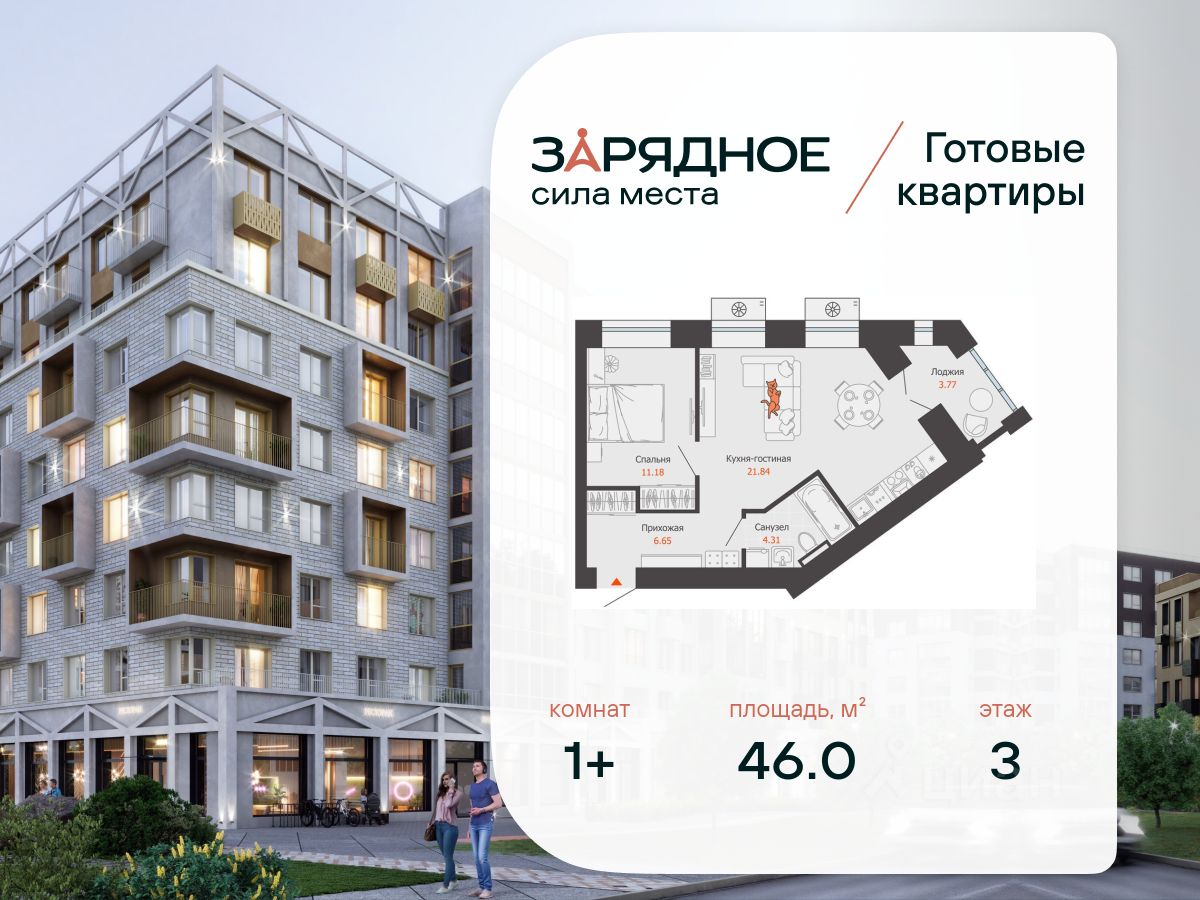 Продается 1-комнатная квартира, корпус 5, площадь 46.00 кв. с предчистовой отделкой. Квартира находится в жилом комплексе комфорт-класса "Зарядное" (ГК "Железно").
