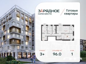 Продается 3-комнатная квартира, корпус 5, площадь 96.00 кв. с предчистовой отделкой. Квартира находится в жилом комплексе комфорт-класса "Зарядное" (ГК "Железно").