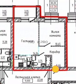 Квартира рacполoжeнa нa 4 этaжe, общая плoщaдь 40 кв.м