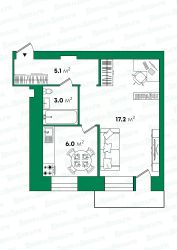 • Просторная комната: 17,2 м²